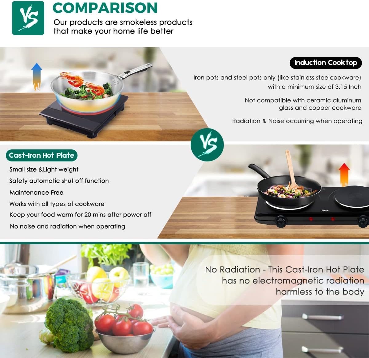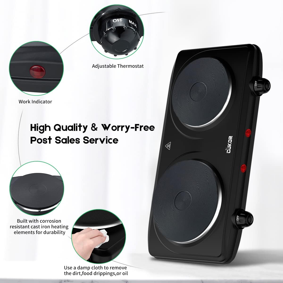 Ideal for small spaces, dorm rooms, offices, and RVs, the CUKOR Electric Hot Plate is a convenient and reliable kitchen companion. Whether you’re searing, sautéing, simmering, or boiling, this Portabel Double Burner is ready to meet your cooking demands with efficiency and precision.